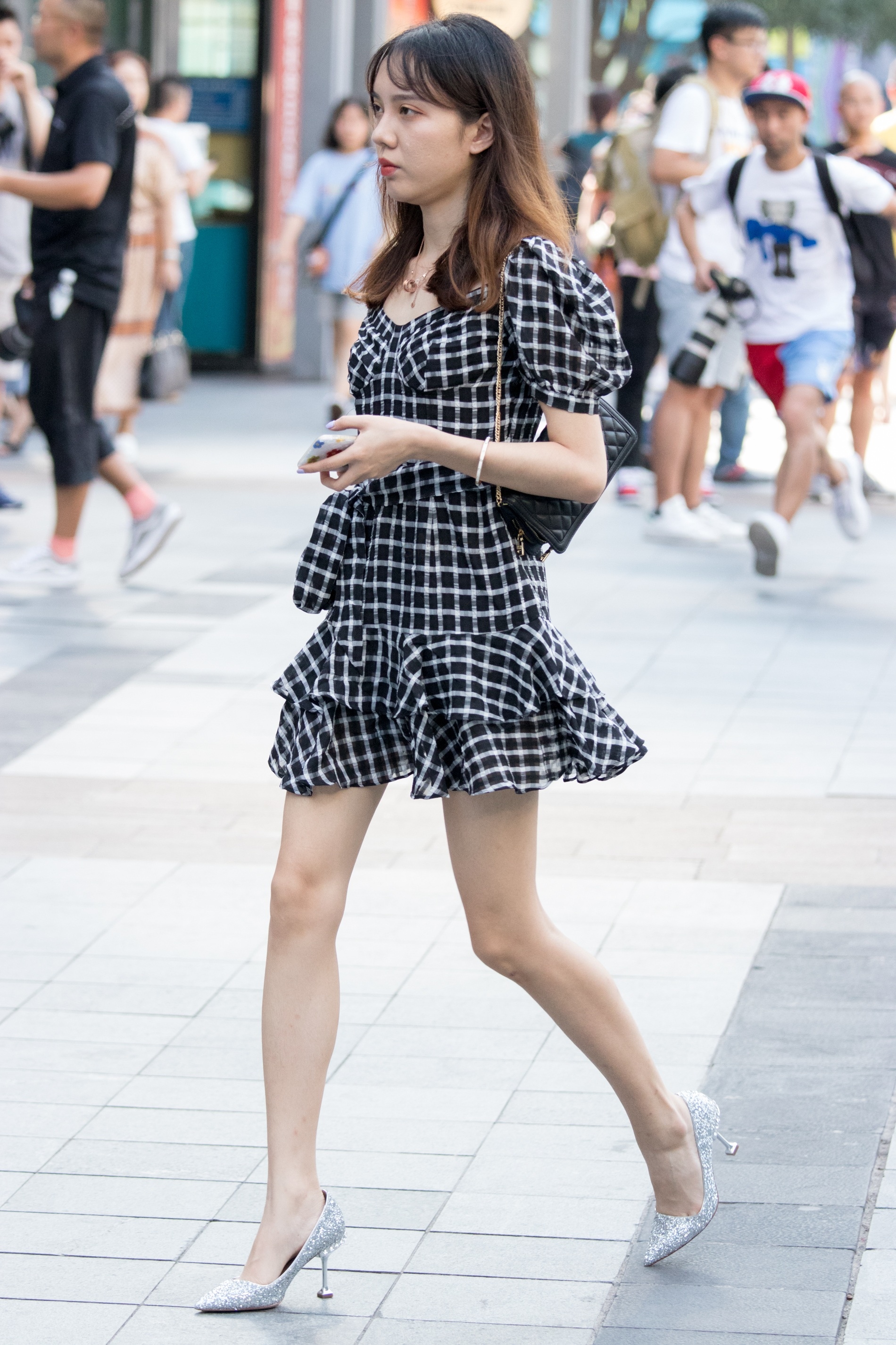 颜值身材气质很好又惑银色高跟M腿美女